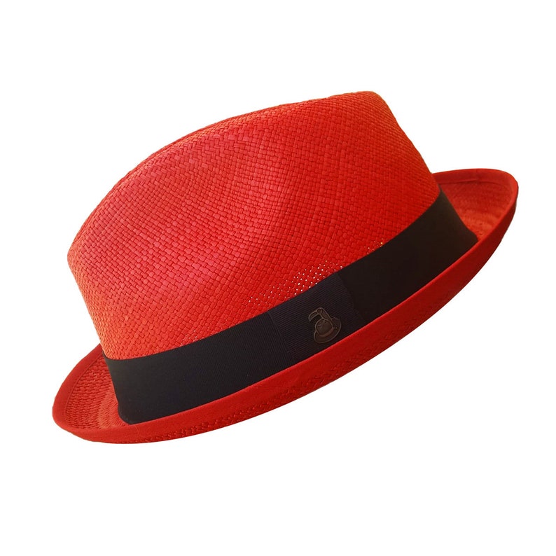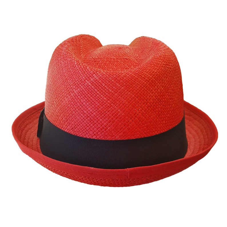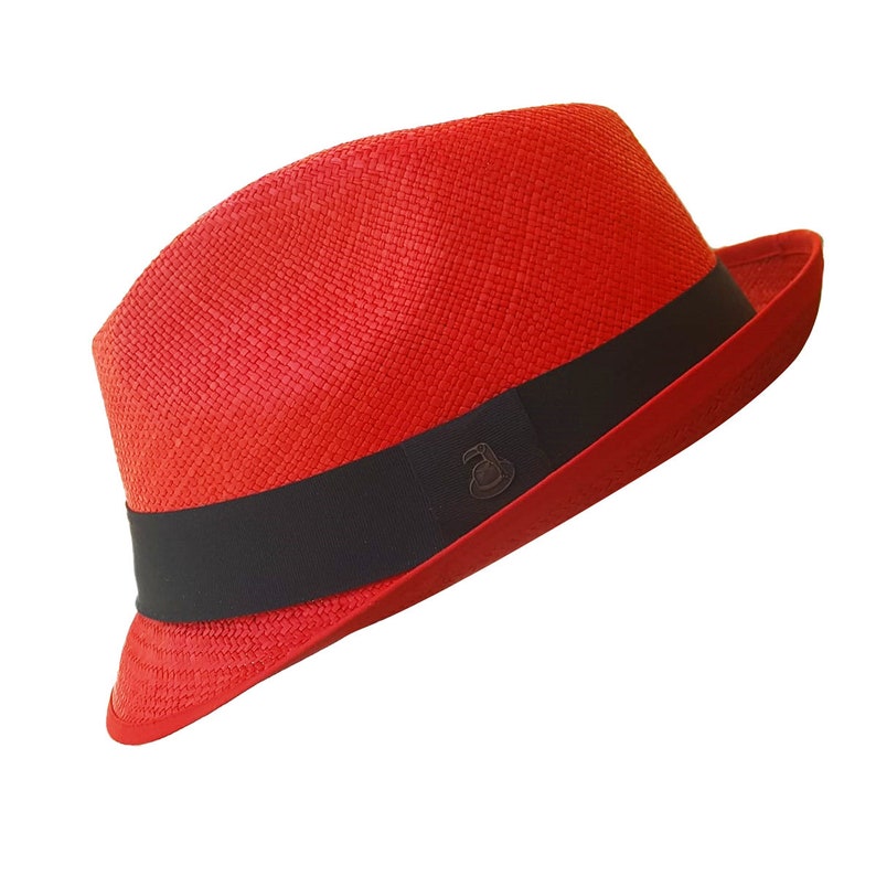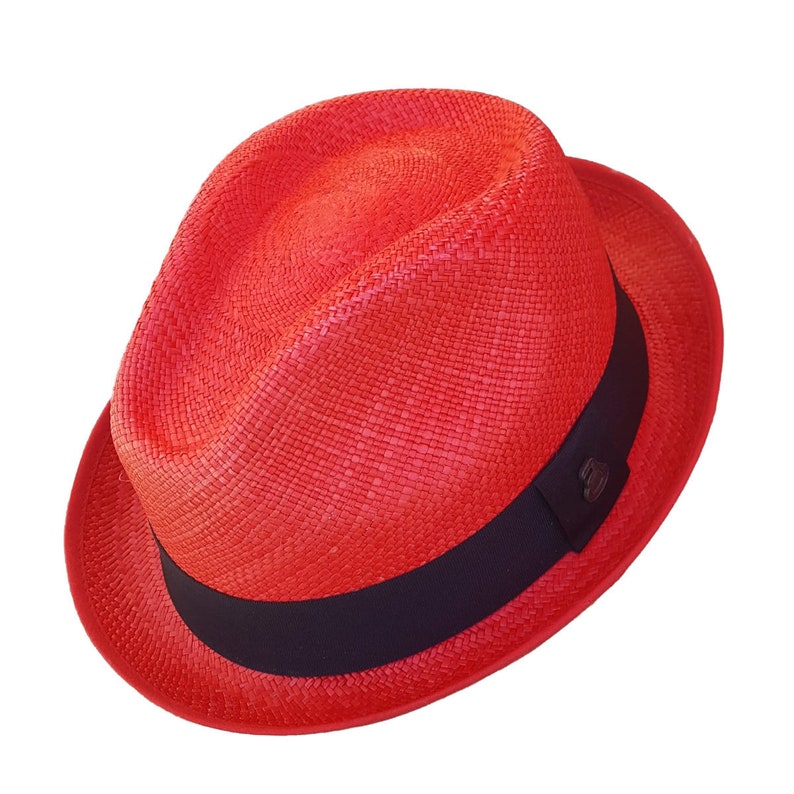 Red Short Brim Fedora | Original Panama Hat | Toquilla Straw | Handwoven in Ecuador - EA